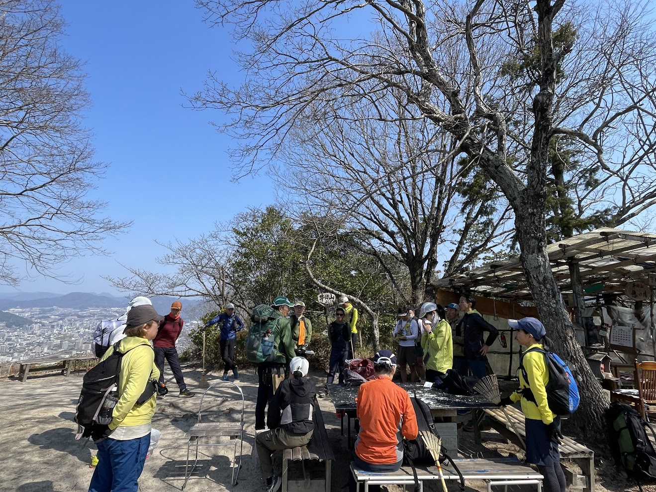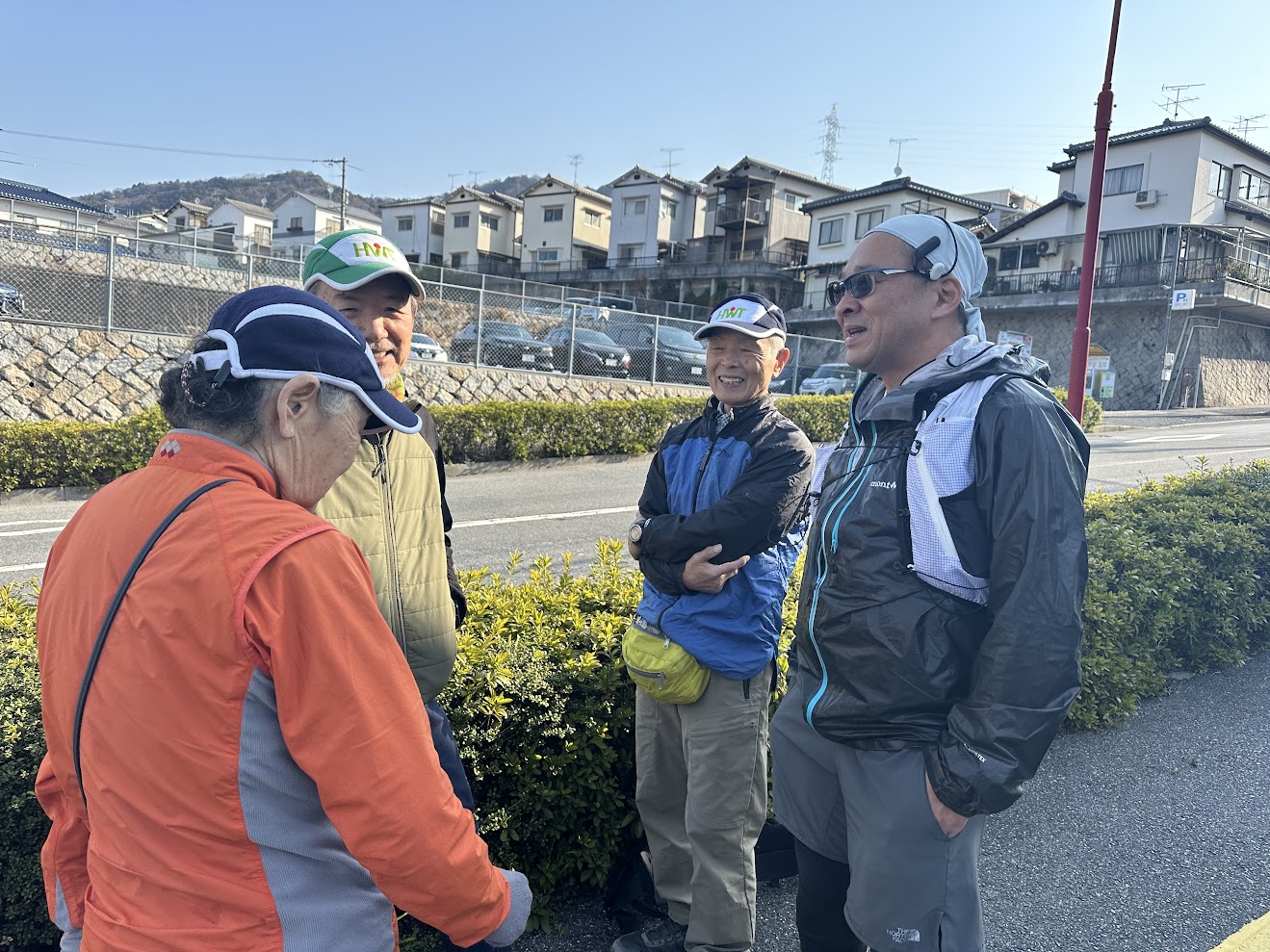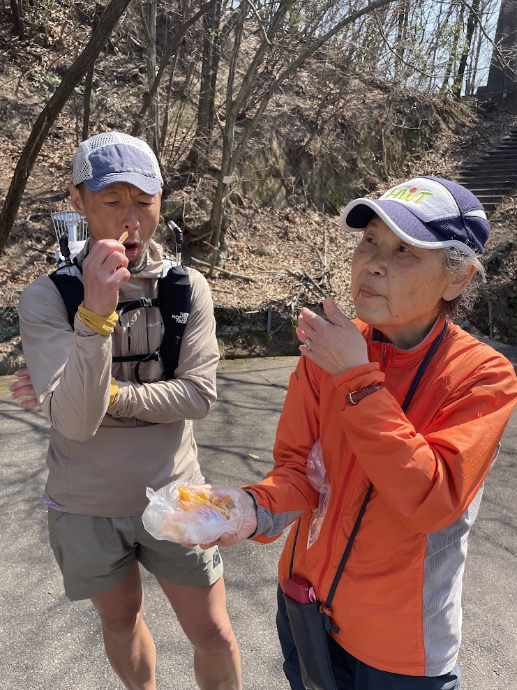 トレイルランナーの方々、特に「牛田山グルグルズ」の皆さまにとっては、いつもは走ってらっしゃる牛田山。こんな風なのんびりタイムは珍しいのかも?