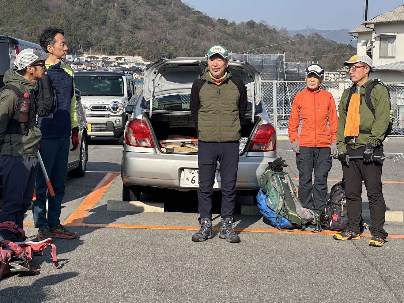 今日は絶対に忘れちゃいけない集合写真!出発前の戸坂新町8時54分(≧▽≦)