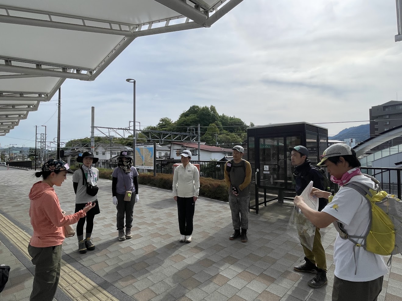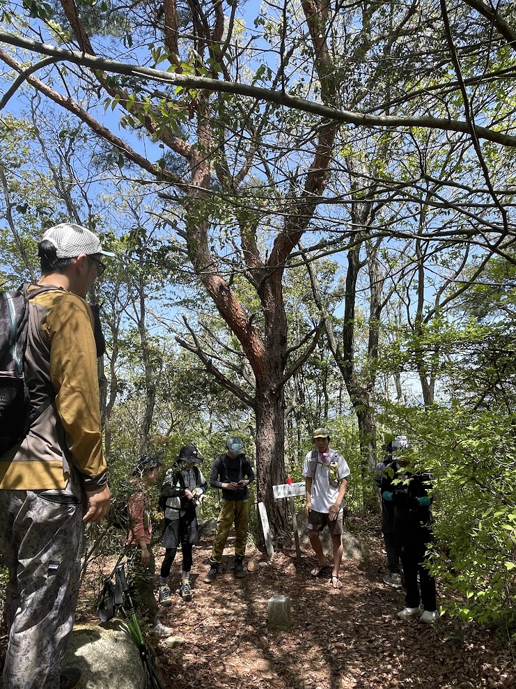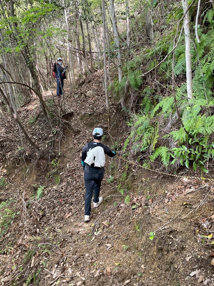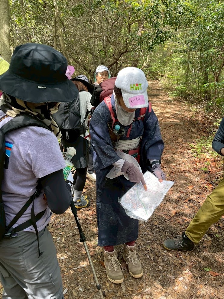 下りで使う宮浜ルートとの分岐地点で、地図を確認したり、下りの向きで分岐周辺のようすを確認して道迷いを防ぐワンポイントアドバイスさせていただきました。