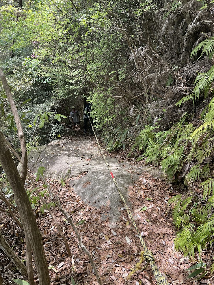 10時40分、整備チームの本日の目標の岩場のロープに到着!