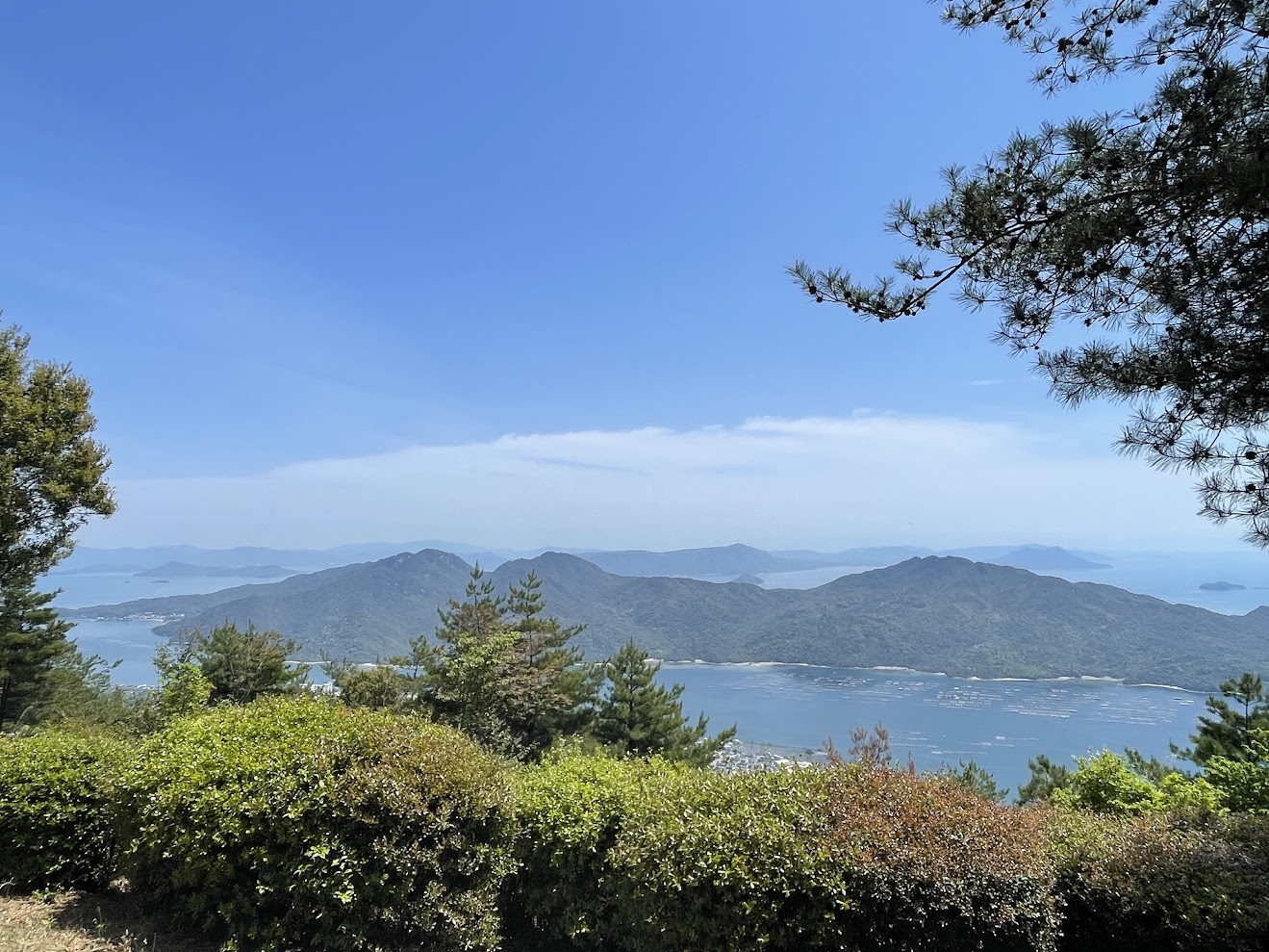 おしゃべりとお昼ごはん、それにおやつ交換でランチタイムをたっぷり満喫した後は絶景スポットの展望台へ。宮島の全貌を見渡せます。