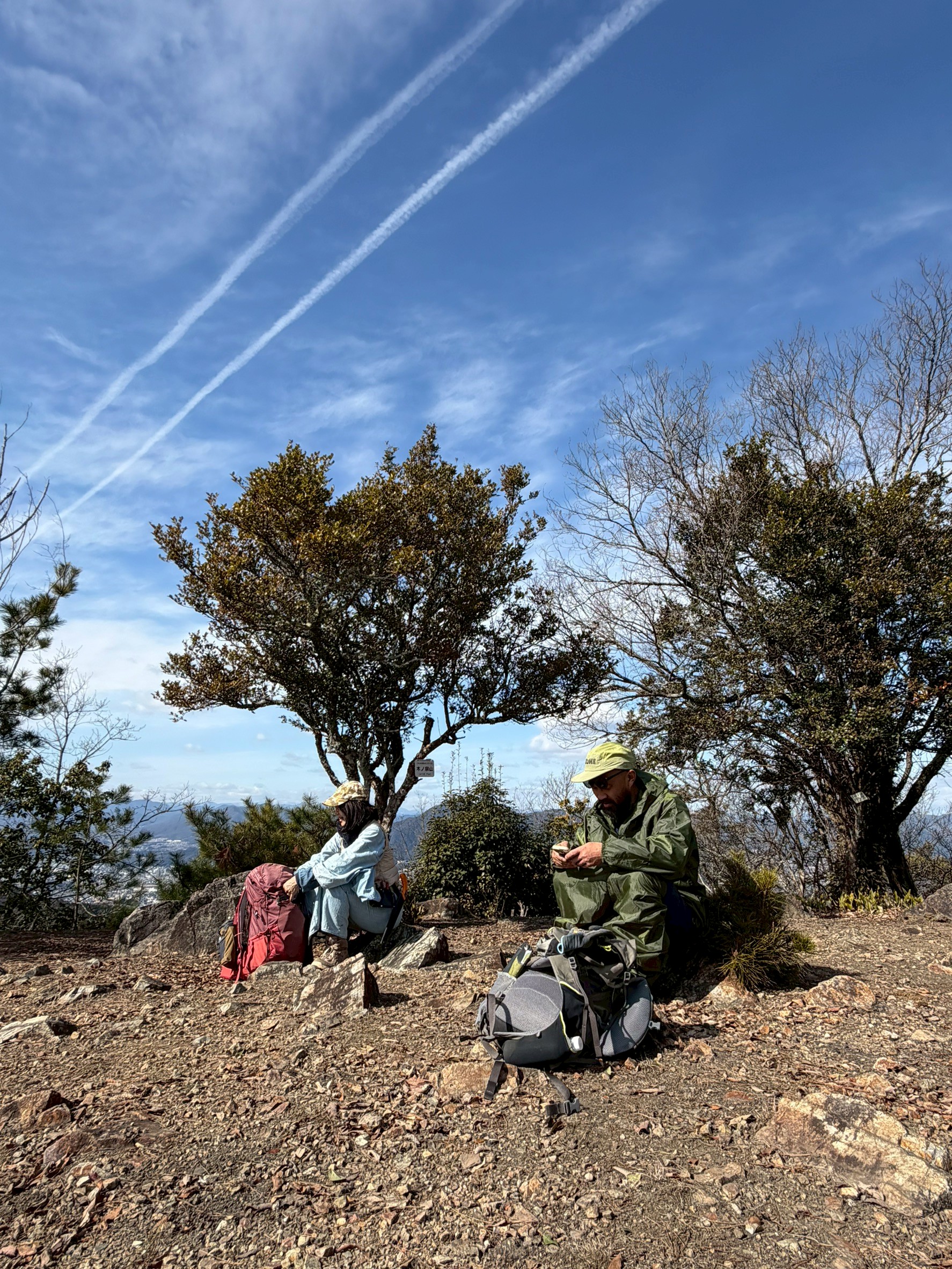 飛行機雲を眺めながらのどかなランチタイム。
